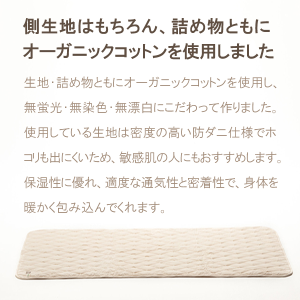 ・キルティング加工が施されたオーガニック敷きふとんパッドです。