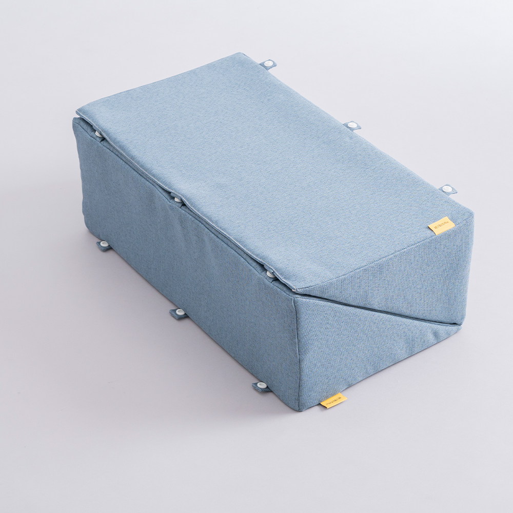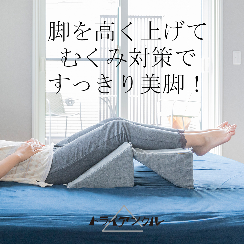 腰枕や足枕、背当てクッションやお昼寝まくらとしても使える!特徴的な三角形が創り出す形状がいろいろな部位をサポートする高機能足枕