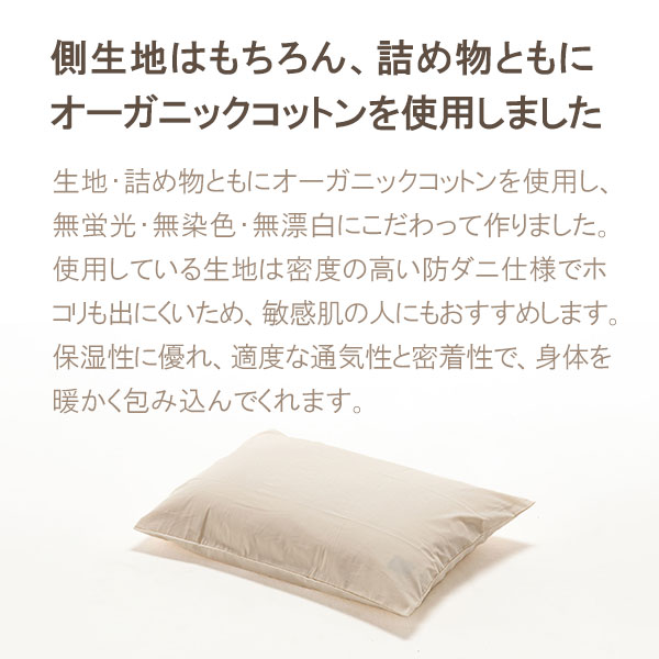 ・ファスナーのない封筒式(ホテルタイプ)のオーガニックコットン100%の枕カバーです。
